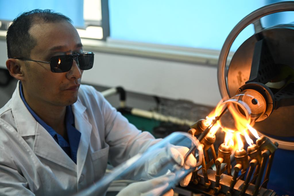 2024年9月24日,日联科技手艺人员烧制X射线管玻璃外壳。记者 季春鹏 摄?。